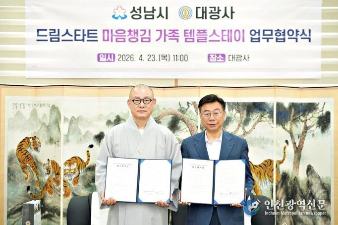 시는 이날 오전 11시 30분 분당구 구미동 불곡산 자락에 있는 대광사 지관전 접견실에서 신상진 성남시장과 도웅 대광사 주지스님 등이 참석한 가운데 ‘드림스타트 가족 마음챙김 템플스테이 추진에 관한 업무협약’을 했다.