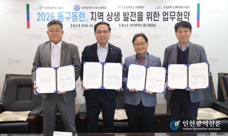 [인천광역신문] 최예준 기자 | 대전 동구는 23일 구청장 접견실에서 우송대학교‧동구 체육회와 ‘동구동런(Run)’ 운영 활성화를 위한 업무협약을 체결했다고 밝혔다.