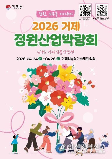 한편, '2026 거제 정원산업박람회 with 거제식물산업전'은‘정원, 모두를 이어주다’를 주제로 4월 24일부터 26일까지 3일간 농업기술센터 잔디광장 일원에서 정원전시, 산업전, 체험 프로그램 등 다양한 콘텐츠로 시민과 관광객을 맞이할 예정이다.