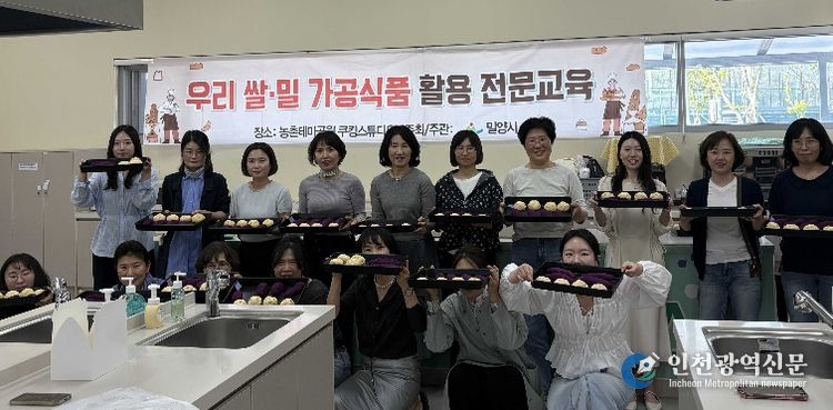 [인천광역신문] 최예준 기자 | 경남 밀양시는 지난 21일과 23일 이틀간 선샤인 밀양 테마파크에서 우리 쌀·밀의 소비 확대와 건강한 식문화 정착을 위해 관내 학교 초·중·고등학교 영양교사 37명을 대상으로 ‘우리 쌀·밀 가공식품 활용 전문교육’을 실시했다.