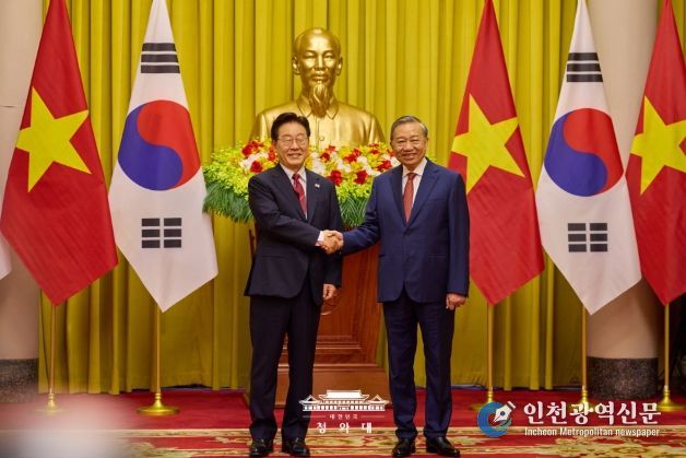 [인천광역신문] 최예준 기자 | 베트남을 국빈 방문한 이재명 대통령은 22일(현지시간) "양국은 2030년까지 교역 규모 1500억 불 목표 달성을 위해 교역·투자 협력을 더욱 호혜적으로 발전시켜 나가기로 했다"고 밝혔다.