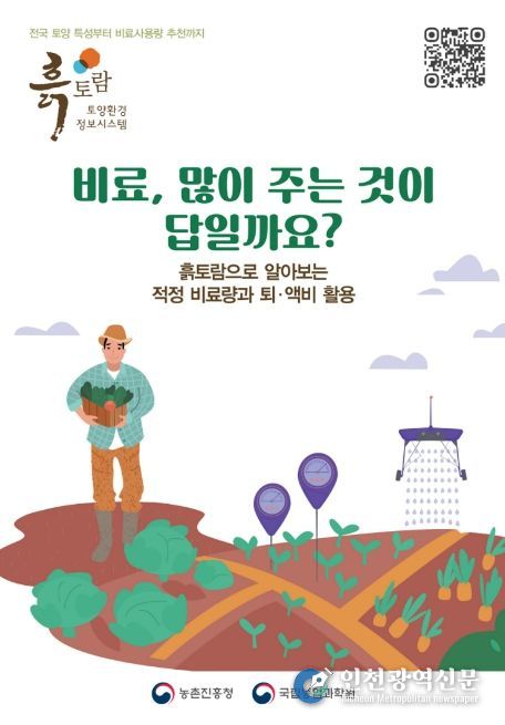 [인천광역신문] 최예준 기자 | 원주시농업기술센터는 최근 국제 원자재 시장 변동으로 비료 가격 불확실성이 지속됨에 따라, 농가의 경영비 부담을 줄이고 안정적인 영농을 지원하기 위해 ‘토양검정 기반 적정시비 실천’ 홍보에 나선다. 또한 농촌진흥청 및 관계기관과 협력해 과다 시비를 줄이고 비료 이용 효율을 높이기는 데에도 힘쓸 계획이다.