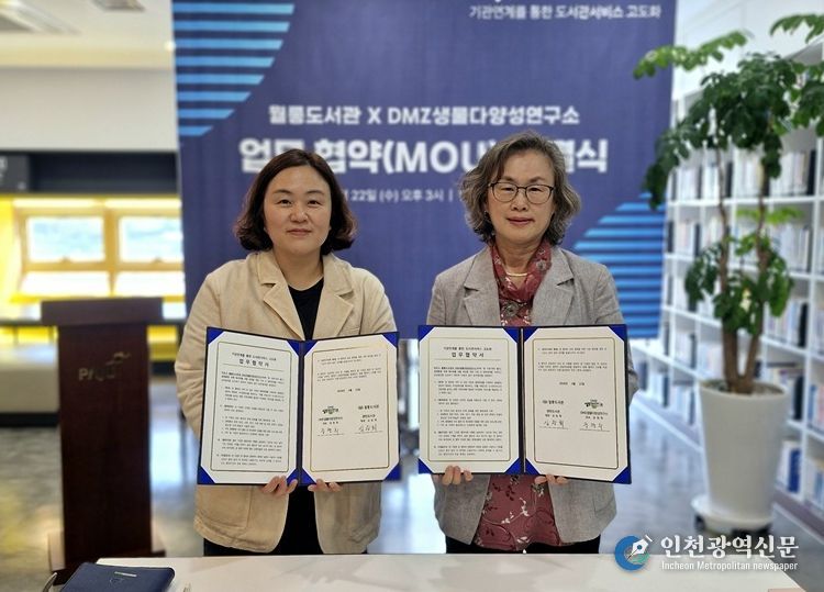 [인천광역신문] 최예준 기자 | 파주시 월롱도서관은 지난 22일 디엠지(DMZ)생물다양성연구소와 지역사회 독서진흥 및 생태환경 분야 협력을 위한 업무협약을 체결했다.