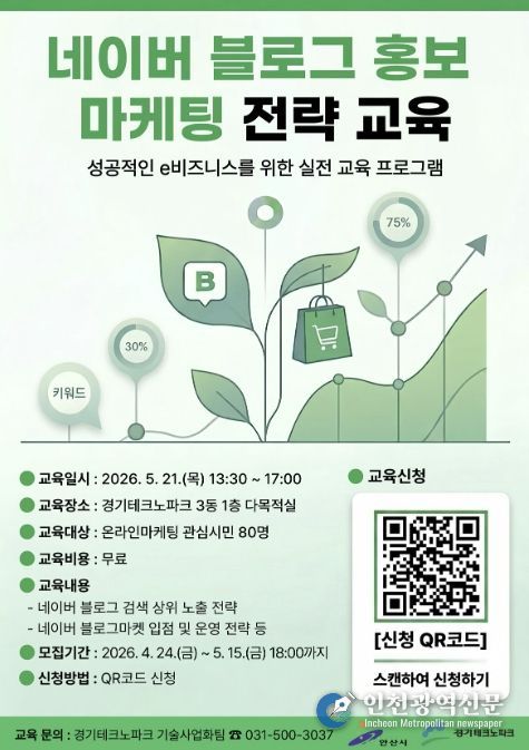 이번 교육은 5월 21일 오후 1시 30분부터 5시까지 경기테크노파크 3동 1층 다목적실(상록구 해안로 705)에서 진행된다.
