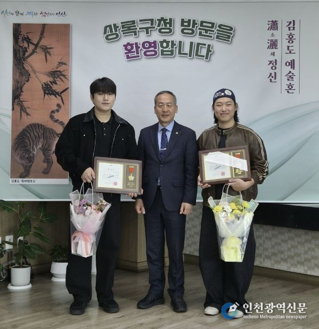 [인천광역신문] 최예준 기자 | 안산시 상록구는 지난 23일 구청장실에서 성안고 사거리 종이 유출 사고 현장에서 자발적으로 수거 활동에 나선 한양대학교 ERICA 캠퍼스 학생 2명에게 ‘모범시민 표창’을 수여했다고 24일 밝혔다.