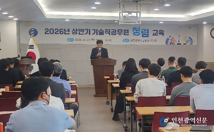 [인천광역신문] 최예준 기자 | 대전시교육청은 4월 23일 시교육청 회의실에서 본청 및 동·서부교육지원청 기술직 공무원을 대상으로 ‘2026년 상반기 기술직 공무원 청렴 및 시설예산 교육’을 실시했다고 밝혔다.