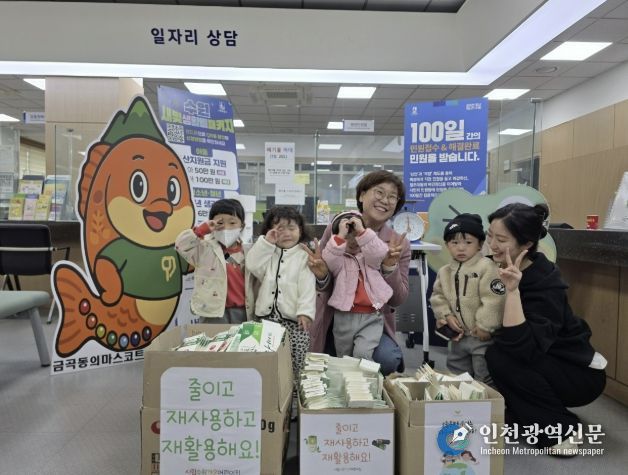 [인천광역신문] 최예준 기자 | 수원시 권선구 금곡동 행정복지센터는 지난 22일 오전 10시, 행정복지센터 민원실에서 시립수원가온어린이집 원생 10여 명이 참여한 ‘금곡이가 알려주는 재활용 놀이터’ 체험 행사를 진행했다고 밝혔다.