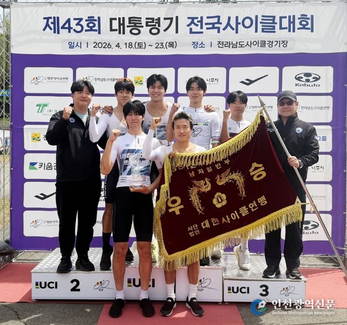 [인천광역신문] 최예준 기자 | 의정부시청 직장운동경기부 사이클팀이 4월 18일부터 23일까지 6일간 전라남도 나주에서 열린 ‘제43회 대통령기 전국사이클대회’에서 종합우승을 차지하며 2년 연속 정상에 오르는 성과를 거뒀다.