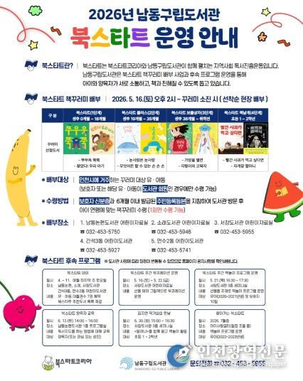 [인천광역신문] 최예준 기자 | 인천 남동구립도서관은 5월 16일 토요일 오후 2시부터 ‘2026년 북스타트 책 꾸러미 배부’를 시작한다고 24일 밝혔다.