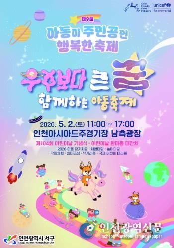 [인천광역신문] 최예준 기자 | 인천 서구는 제104회 어린이날을 맞이하여 오는 5월 2일 오전 11시부터 오후5시까지 인천아시아드주경기장 남측광장에서 제9회 아동이 주인공인 행복한 축제를 개최한다.