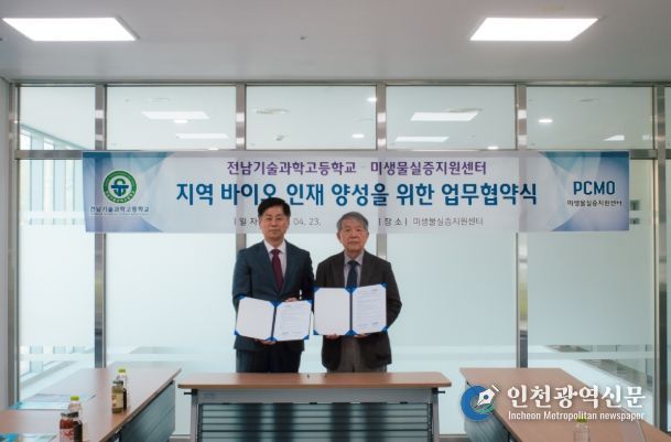 [인천광역신문] 최예준 기자 | 전남 화순 미생물실증지원센터는 지난 4월 23일 전남기술과학고등학교(교장 홍성희)와 지역 바이오산업 인재 양성을 위한 업무협약(MOU)을 체결했다고 밝혔다.