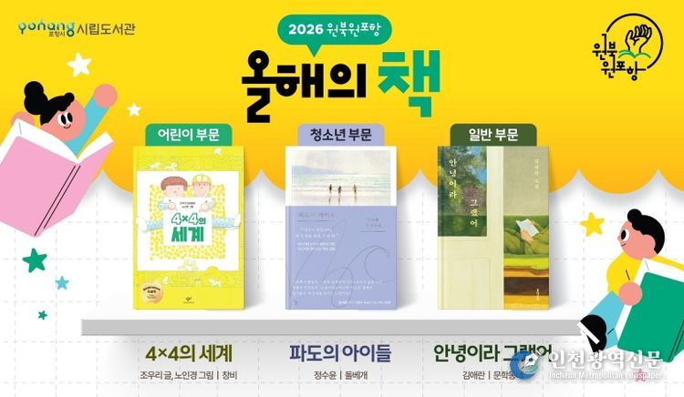 [인천광역신문] 최예준 기자 | 포항시는 시민들이 한 권의 책을 통해 소통하고 공감하는 독서 생활화 운동인 ‘2026 원북 원포항’ 올해의 책 3권을 최종 선정해 발표했다.