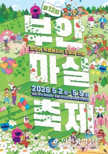 [인천광역신문] 최예준 기자 | 부안군은 지역 대표 축제인 제13회 부안마실축제가 오는 5월 2일부터 5일까지 4일간 부안 해뜰마루 지방정원 일원에서 개최된다고 밝혔다.