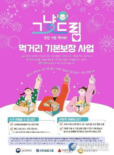 [인천광역신문] 최예준 기자 | 서울 동대문구는 지역 내 취약계층과 위기 주민을 위한 즉시지원형 복지사업 ‘그냥드림’을 5월부터 본격 운영한다고 밝혔다. 갑작스러운 생계 곤란을 겪는 주민이 복잡한 서류와 긴 심사 절차에 막히지 않고, 필요한 식품과 생필품을 먼저 지원받을 수 있도록 하겠다는 취지다. 기존 제도권 밖에 머물던 위기 주민에게 먼저 손을 내미는 생활밀착형 복지를 강화하겠다는 뜻도 담겼다. ‘그냥드림’은 보건복지부가 푸드마켓 인프라를 활용해 시범 운영해 온 먹거리·생필품 지원 모델로, 복잡한 증빙 없이 먼저 돕고 이후 상담과 추가 지원으로 잇는 구조를 갖고 있다.