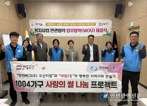[인천광역신문] 최예준 기자 | 오산시 대원2동 행정복지센터와 대원2동 지역사회보장협의체는 지난 22일 한전MCS(주) 오산지점과 지역 내 취약계층 지원을 위한 복지업무협약을 체결하고, ‘1004가구 사랑의 쌀 나눔 프로젝트’ 추진을 위한 발대식을 개최했다고 밝혔다.