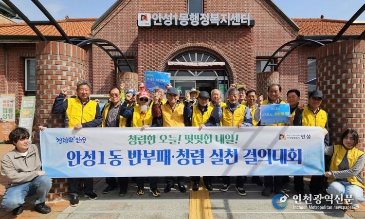 [인천광역신문] 최예준 기자 | 안성시 안성1동은 4월 23일 안성1동 노인회와 방위협의회가 함께한 ‘청렴해 봄’ 릴레이 청렴결의대회를 끝으로, 기관·사회단체가 함께한 청렴 실천 릴레이를 성공적으로 마무리하며 외부청렴도 향상에 힘을 모았다.