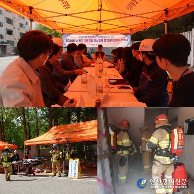 [인천광역신문] 최예준 기자 | 남양주소방서는 지난 22일 금곡동 재개발 아파트 일원에서 ‘2026년 상반기 기관합동 도상훈련 및 긴급대응협력관 회의’를 실시하고, ‘지하층 화재진압 및 인명구조 특별구조훈련’을 병행 추진했다고 밝혔다.