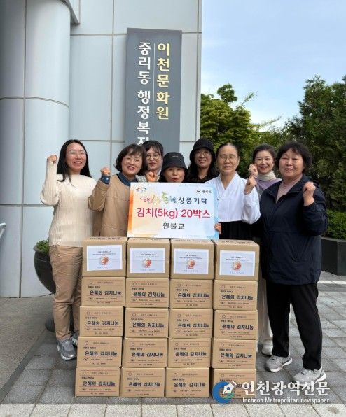 [인천광역신문] 최예준 기자 | 이천시 중리동행정복지센터는 원불교가 지역 내 어려운 이웃들을 위해 김치(5kg) 20박스를 기탁하며 따뜻한 나눔을 실천했다고 밝혔다. 이번 기탁은 경제적 어려움과 돌봄 공백 등으로 일상생활에 어려움을 겪고 있는 취약계층 이웃들에게 조금이나마 힘이 되고자 마련됐다.