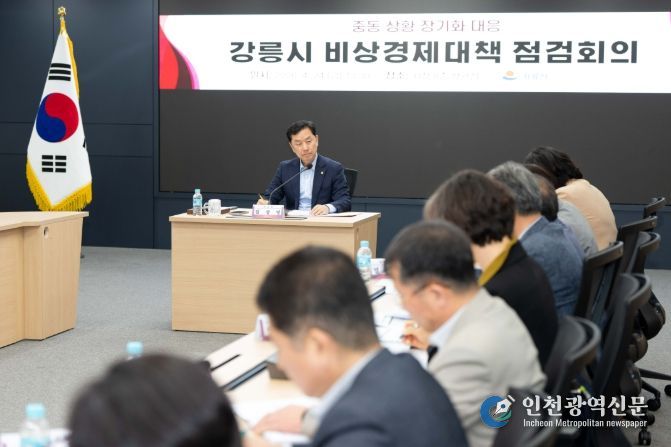 [인천광역신문] 최예준 기자 | 강릉시는 24일 시청 8층 상황실에서 중동상황 장기화에 따른 유가 상승 및 원자재 수급 차질 등 지역경제 전반에 미치는 영향을 점검하고 선제적 대응 방안을 마련하기 위해 비상경제대책 점검회의를 개최했다.