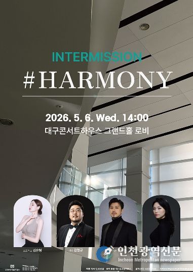 [인천광역신문] 최예준 기자 | 대구콘서트하우스는 오는 5월 6일 오후 2시, 시민들에게 일상 속 여유를 선사할 ‘2026 클래식 오아시스 '인터미션 #하모니'’를 그랜드홀 로비에서 개최한다.