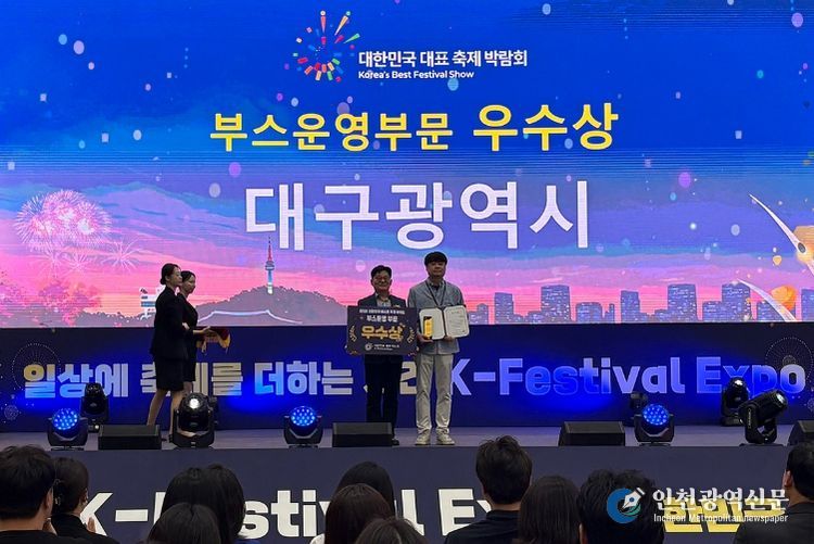 [인천광역신문] 최예준 기자 | 대구문화예술진흥원 문화예술본부는 지난 4월 17일~19일, 수원컨벤션센터에서 열린 제6회 대한민국대표축제엑스포에 대구 지역 대표 축제 브랜드 ‘판타지아대구페스타’ 홍보로 부스운영부문 우수성을 인정받아 ‘베스트 축제 어워드 부스운영 부문 우수상’을 수상했다.