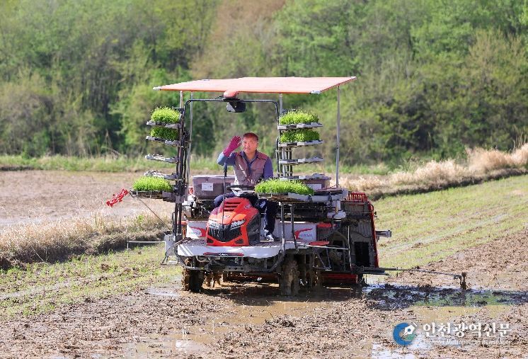[인천광역신문] 최예준 기자 | 함양군 지곡면 개평리 은혜들에서 4월 23일 2026년 첫 모내기를 시작되며 본격적인 영농철의 시작을 알렸다.