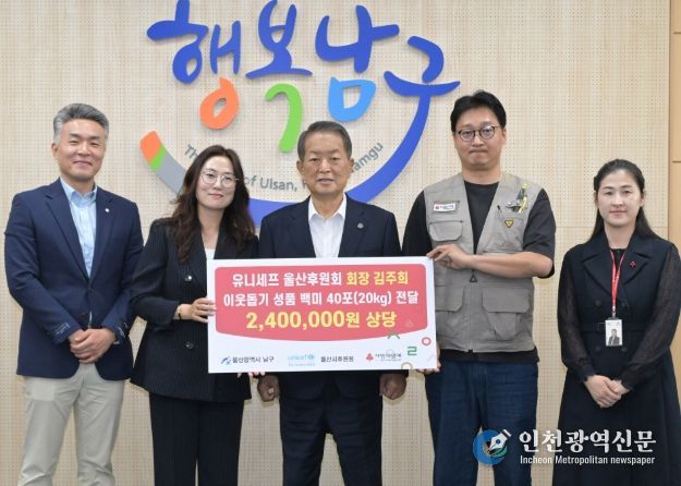 [인천광역신문] 최예준 기자 | 유니세프 울산시후원회(회장 김주희)는 24일 남구청을 방문해 관내 저소득층 지원을 위한 백미(20kg) 40포를 전달했다.