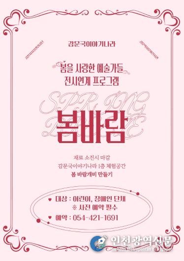 [인천광역신문] 최예준 기자 | 김천시시설관리공단은 감문역사문화전시관에서 전시 ‘봄을 사랑한 예술가들’과 연계한 단체체험프로그램 ‘봄바람’을 운영 중이라고 밝혔다.