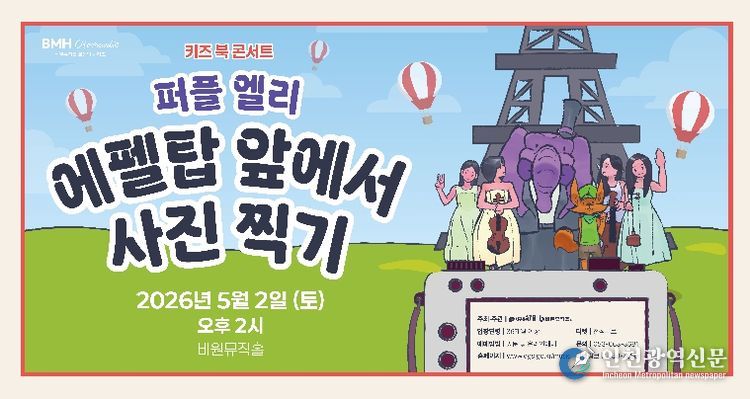 [인천광역신문] 최예준 기자 | 비원뮤직홀에서는 어린이날을 기념하기 위해 아이와 가족이 함께 감상할 수 있는 키즈 북 콘서트 ‘퍼플 엘리 – 에펠탑 앞에서 사진 찍기’를 오는 5월 2일 개최한다.