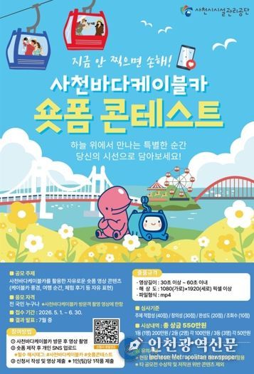 [인천광역신문] 최예준 기자 | 사천시시설관리공단은 사천바다케이블카의 매력을 널리 알리고 방문객 참여형 콘텐츠를 발굴하기 위해 ‘사천바다케이블카 숏폼 콘테스트’를 개최한다고 26일 밝혔다.