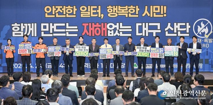 [인천광역신문] 최예준 기자 | 대구광역시는 최근 잇따른 산업단지 내 화재와 폭발 사고로부터 시민의 소중한 생명과 재산을 보호하기 위해 4월 24일 오후 2시, 시청 산격청사 대강당에서 ‘산업단지 재해예방 안전실천 선포식’을 개최했다.