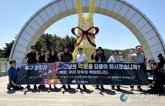[인천광역신문] 최예준 기자 | 대구광역시는 지난해 4월 28일 발생한 ‘함지산 산불 1년’을 맞아 산불의 위험성과 예방의 중요성을 널리 알리기 위해 4월 25일 오전 10시 앞산공원 큰골에서 산불예방 캠페인을 실시했다.