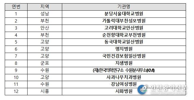 대표단에는 분당서울대학교병원, 가톨릭대학교부천성모병원, 고려대학교안산병원, 순천향대학교부천병원, 동국대학교일산병원, 명지병원, 국민건강보험일산병원, 지샘병원, (재)한국의학연구소(KMI) 수원분사무소, 사과나무치과병원, 강남여성병원, 시화병원 등 도내 의료기관 12개소가 참여했다.