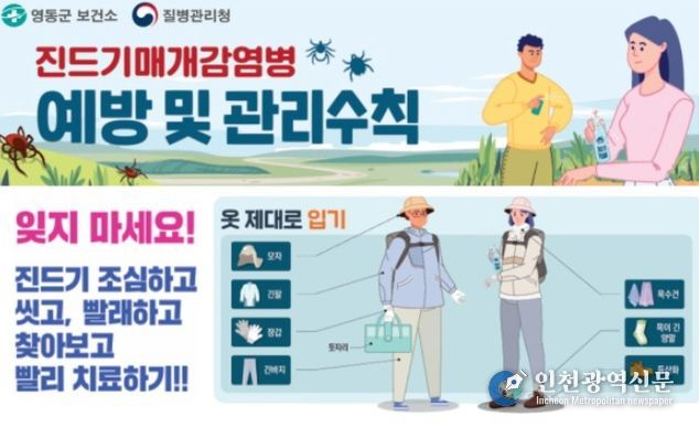 [인천광역신문] 최예준 기자 | 주로 봄에 발생하기 시작하여 가을철에 집중적으로 발생하는 진드기매개 감염병은 쯔쯔가무시증과 중증열성혈소판감소증후군(SFTS) 등으로 바이러스나 세균에 감염된 진드기에게 물려 발생한다.
