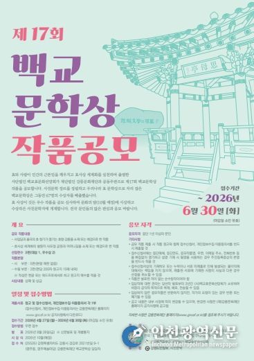 [인천광역신문] 최예준 기자 | 재단법인 강릉문화재단과 사단법인 백교효문화선양회는 효(孝) 사상과 가족애를 주제로 한 문학작품 발굴을 위해 '제17회 백교문학상' 작품 공모를 실시한다.