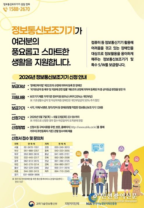 [인천광역신문] 최예준 기자 | 강원특별자치도는 장애인 등 디지털 취약계층의 정보 접근성을 높이고 디지털 이용 격차를 해소하기 위해 ‘2026년 정보통신보조기기 보급 지원사업’ 신청을 받는다.