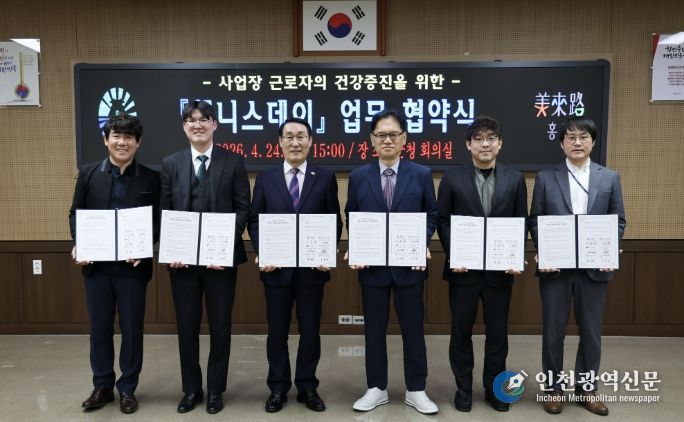 [인천광역신문] 최예준 기자 | 홍성군은 지난 24일 ㈜도원조경, 아모레퍼시픽 홍주점, ㈜트루 홍성지사, 한국농어촌공사 충남서부관리단 등 사업장 4개소와 충남서부근로자건강센터와 함께 근로자 건강증진을 위한 ‘웰니스데이’ 사업 업무협약을 체결했다고 밝혔다.