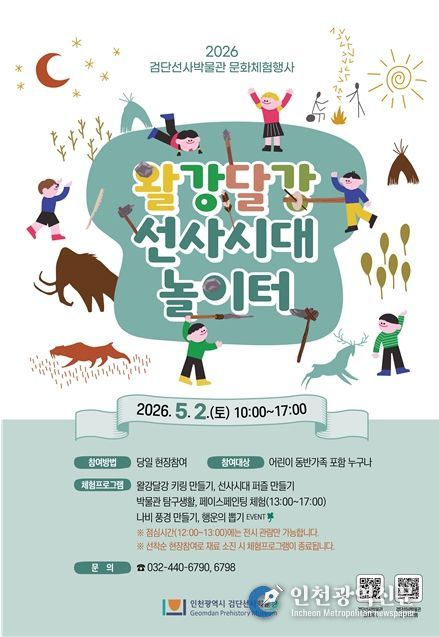 [인천광역신문] 최예준 기자 | 인천광역시 검단선사박물관은 오는 5월 2일, 가정의 달을 맞아 어린이 문화체험행사 ‘왈강달강 선사시대 놀이터’를 개최한다고 밝혔다.