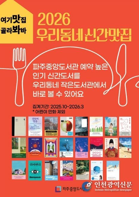 [인천광역신문] 최예준 기자 | 파주시 중앙도서관은 지역 내 작은도서관 활성화를 위해 2024년부터 추진해 온 '우리동네 신간맛집' 사업을 지난 23일부터 관내 13개 작은도서관과 함께 본격 운영하고 있다.