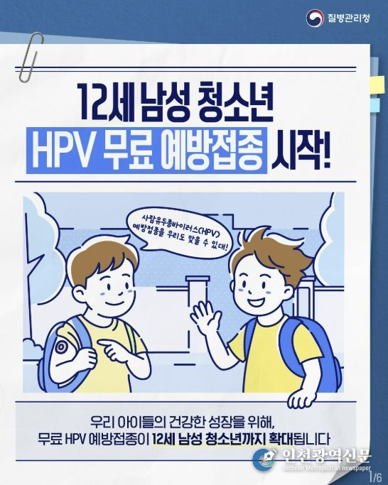 [인천광역신문] 최예준 기자 | 부천시는 5월 6일부터 사람유두종바이러스(HPV) 예방접종 지원 대상을 2014년 출생 12세 남아까지 확대해 시행한다. 그동안 12세부터 17세 여성과 18세부터 26세 저소득층 여성을 중심으로 지원해 온 대상이 이번 확대를 계기로 남아까지 처음 포함됐다.