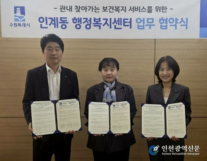 [인천광역신문] 최예준 기자 | 수원시 팔달구 인계동은 지난 24일, 지역사회보장협의체과 한전MCS(주) 경기지사 및 직할지점과 함께 취약계층 발굴과 지속적인 인적안전망 활동 참여를 위한 업무 협약을 체결했다.