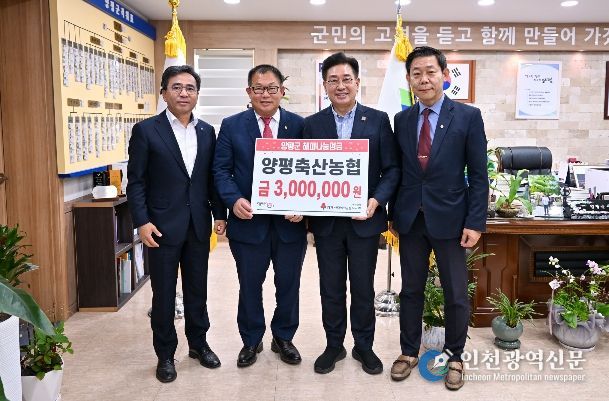 [인천광역신문] 최예준 기자 | 양평군은 지난 23일 양평축산농협이 취약계층을 위한 해피나눔성금 300만 원을 기탁했다고 밝혔다.