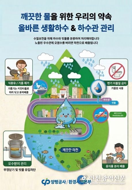 [인천광역신문] 최예준 기자 | 양평공사은 군민의 삶이 행복한 자연 친화적인 양평을 구현하기 위해 ‘2026년 올바른 생활하수 배출 및 빗물받이 관리 홍보 활동’을 본격적으로 추진한다고 밝혔다.