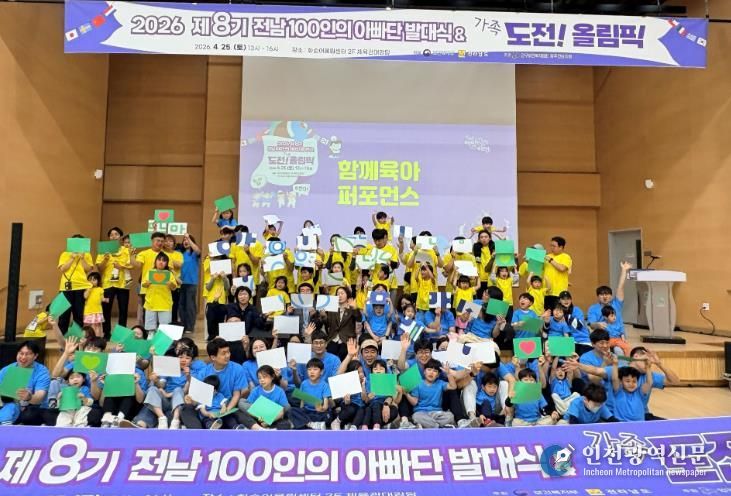[인천광역신문] 최예준 기자 | 전라남도는 최근 화순 어울림센터체육관에서 ‘2026년 제8기 전남 100인의 아빠단 발대식 및 도전! 가족올림픽’을 열고, 아빠의 육아 참여 확대와 함께하는 돌봄 문화 확산을 다짐했다.