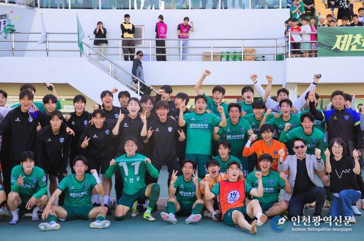 [인천광역신문] 최예준 기자 | 제천시민축구단이 지난 26일 제천종합운동장에서 열린 '2026 K4리그' 8라운드 평창유나이티드와의 홈경기에서 1:0으로 승리하며 2연승을 달성했다.