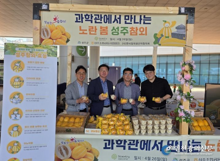 [인천광역신문] 최예준 기자 | 성주군과 성주조합공동사업법인과 (사)한국참외생산자협의회는 지난 4월 26일, 대구 달성군에 소재한 국립대구과학관에서 과학관에서 만나는 노란 봄 성주참외를 주제로 성주참외 홍보 및 무료 시식 행사를 성황리에 마쳤다.