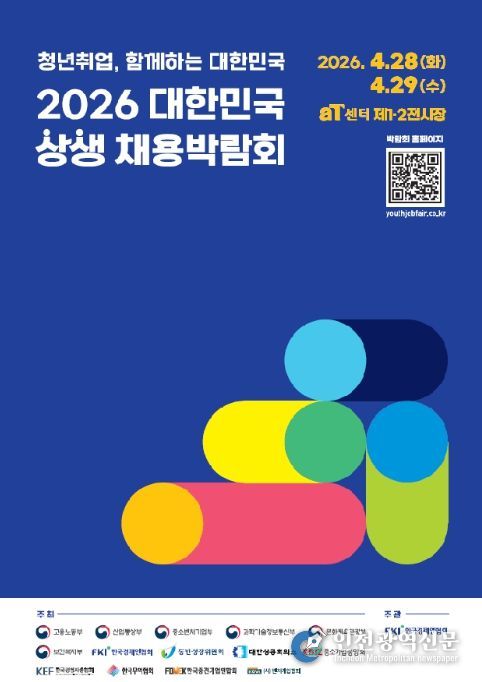[인천광역신문] 최예준 기자 | 고용노동부를 비롯한 관계부처(과학기술정보통신부・문화체육관광부・산업통상부・보건복지부・중소벤처기업부) 및 한국경제인협회 등 경제단체는 공동으로 청년의 일자리 기회 확대를 위해 4월 28일과 29일, 서울 양재 aT센터에서 「2026 대한민국 상생 채용박람회」를 개최한다.