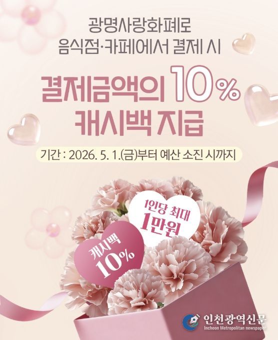 [인천광역신문] 최예준 기자 | 광명시가 5월 가정의 달을 맞아 가족 외식은 즐겁게, 골목상권은 활기차게 만드는 특별한 캐시백 혜택을 제공한다.