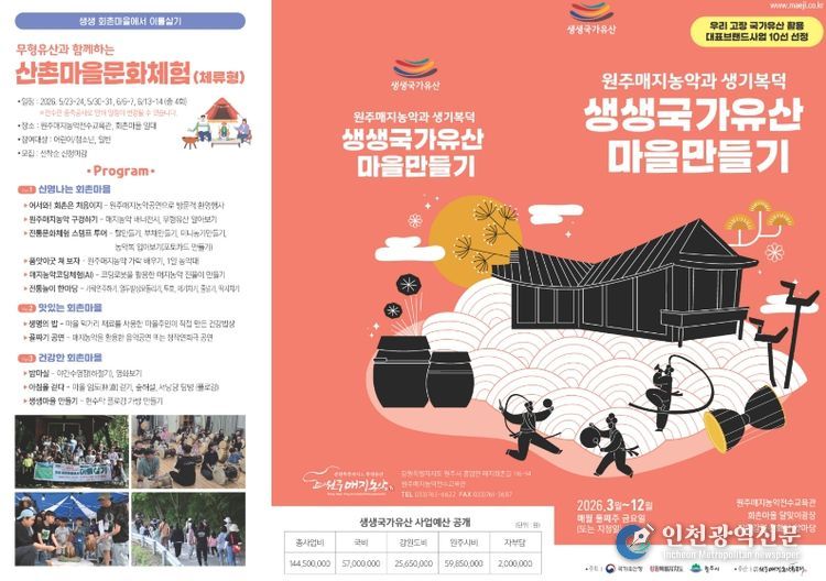 [인천광역신문] 최예준 기자 | 원주시역사박물관은 원주매지농악보존회와 ‘원주매지농악과 생기복덕 생생 국가유산 마을 만들기’ 사업을 운영한다.