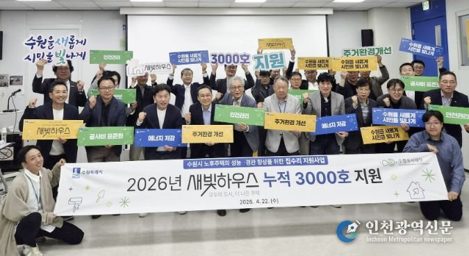 올해 안에 수원시가 오래된 저층주택의 집수리를 지원하는 새빛하우스가 3천호로 늘어난다. 수원시는 올해 지원 대상 904호를 추가해 올해 내에 누적 3천호의 집수리 지원을 완료할 예정이다. 2023년 첫 대상으로 305호가 선정된 이후 2024년 791호, 2025년 1003호에 이어 올해 904호를 선정해 총 3천3호의 낡고 낮은 집을 시민과 함께 고친다.